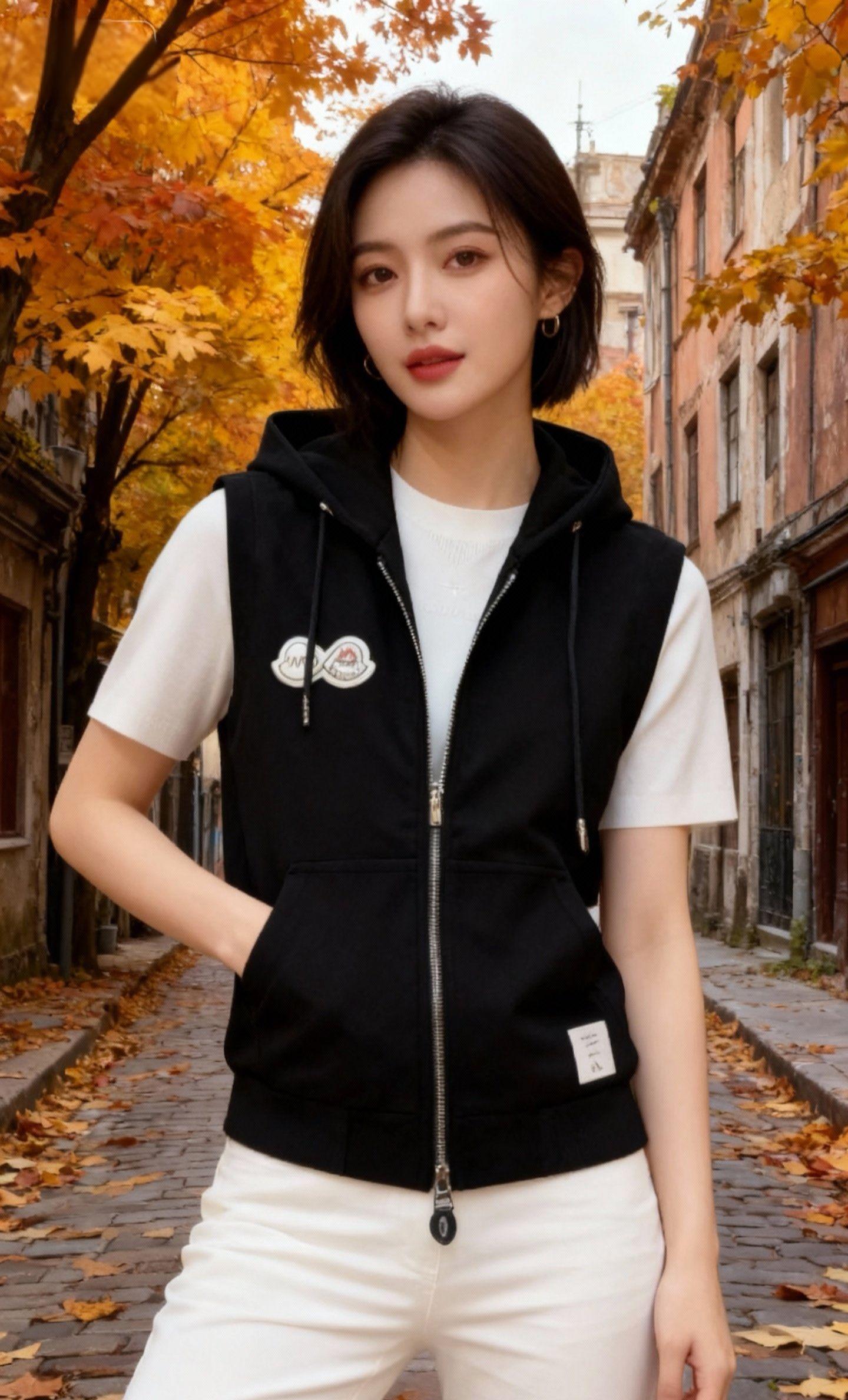#预制国庆出游穿搭 #秋冬穿搭新鲜感在线 #早秋穿搭三分钟出门不是梦 #把日常衣服穿出新花样 #晒晒我的秋日穿搭 2025秋季新款欧货时尚潮牌徽章帅气条纹修身休闲连帽百搭马甲